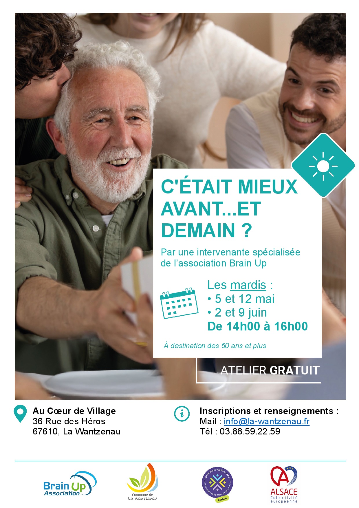 C’est l’ambition de l’atelier « C’était mieux avant… Et demain ? », proposé par le CCAS de La Wantzenau en partenariat avec l’association Brain Up. À travers 4 séances dynamiques et conviviales, ce programme invite les participants à revisiter leurs souvenirs, à découvrir ce qui rapproche ou distingue les générations, à apprivoiser leurs émotions face à l’incertitude, et à adopter des outils simples pour cultiver une vision positive de l’avenir.