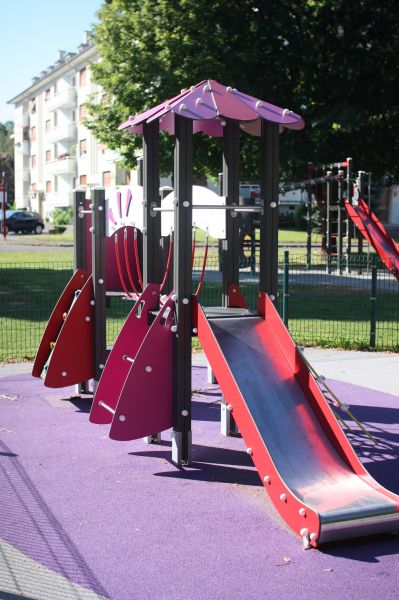 • Aire de jeux des Primevères, rue des Primevères (cordes, toboggan, prises d’escalade, jeux sur ressorts);