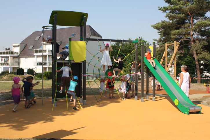 • Aire de jeux de la Mairie, rue des Héros, à l’arrière de la Mairie (tyrolienne, toboggan,toile d’araignée, jeux sur ressorts);